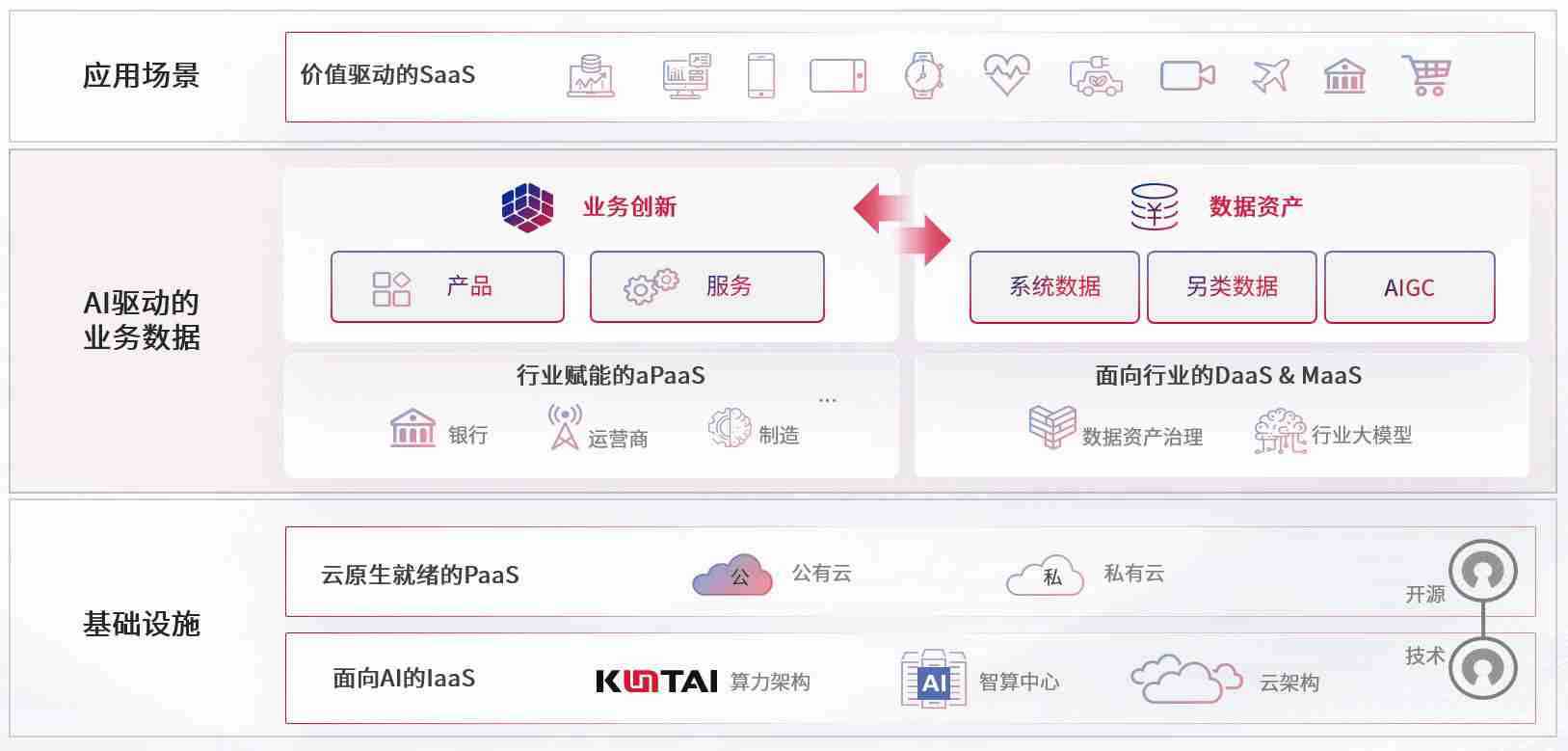 数字时代,,,,围绕企业数字化转型的关键要素,,,,Z6尊龙时凯数码开创性的提出数云融合战略和技术体系框架,,着力在云原生、、数字原生、、AI原生和信创产业上架构产品和服务能力,,,,为处在不同数字化转型阶段的快消零售、、、、汽车、、、、金融、、、医疗、、、政企、、、教育、、、运营商等行业客户提供泛在的敏捷IT能力和融合的数据驱动能力,,,构建跨界融合创新的数字业务场景和新业务模式,,,,助力企业级客户建立面向未来的核心能力和竞争优势,,全面推动社会的数字化、、、、智能化转型升级。。。。